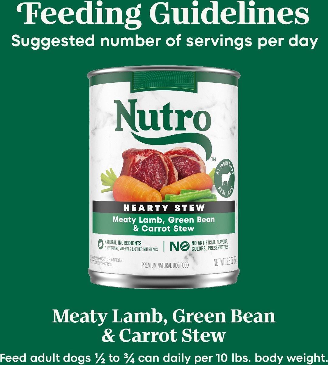 Nutro Hearty Stew Meaty Lamb, Green Bean & Carrot Cuts in Gravy Grain-Free Adult Canned Wet Dog Food, 12.5-oz, case of 12
