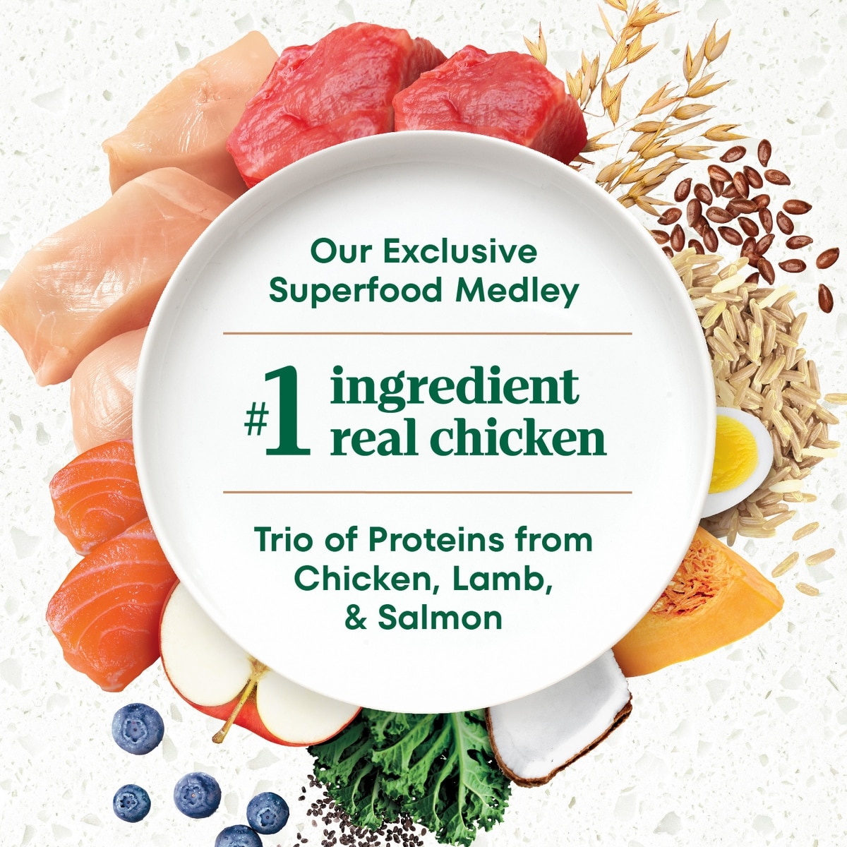 Nutro Ultra dry food is crafted in US facilities using the finest ingredients from around the world. Savory proteins like chicken, lamb and salmon help support strong muscles and a lean body. Ultra recipes also contain a blend of 14 superfoods, including whole grain brown rice and oatmeal, salmon, flaxseed, eggs, tomatoes, apples, blueberries, carrots, coconut, chia seeds, pumpkin, kale, and spinach. This nourishing mix provides essential nutrients and antioxidants to support whole body health.