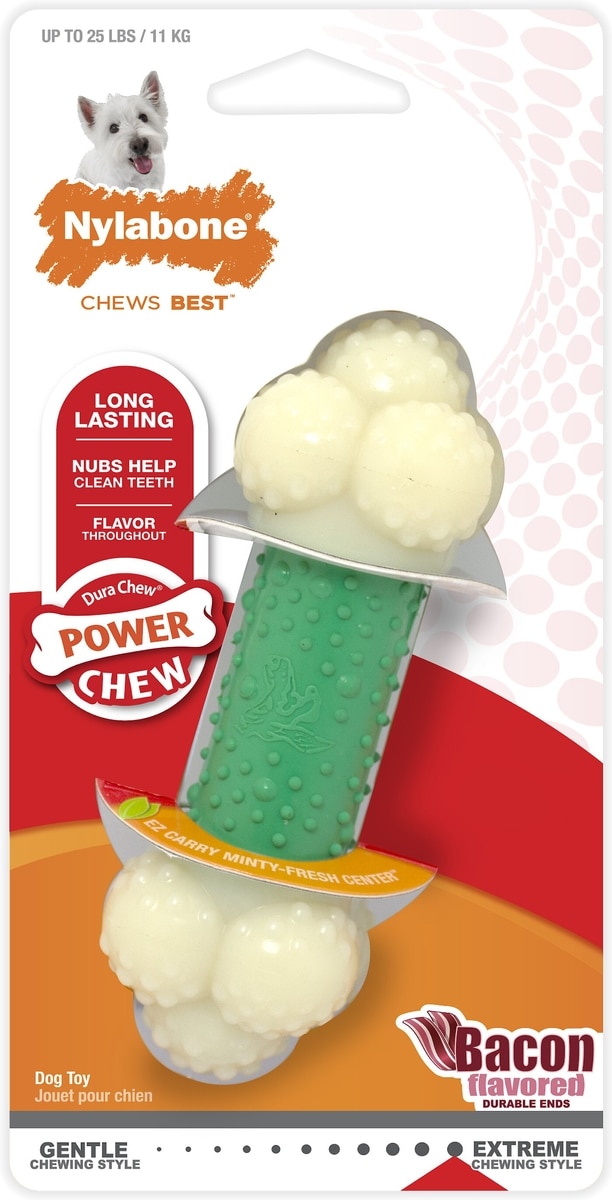 Nylabone Double Action Power Chew Durable Dog Toy Bacon, Small
