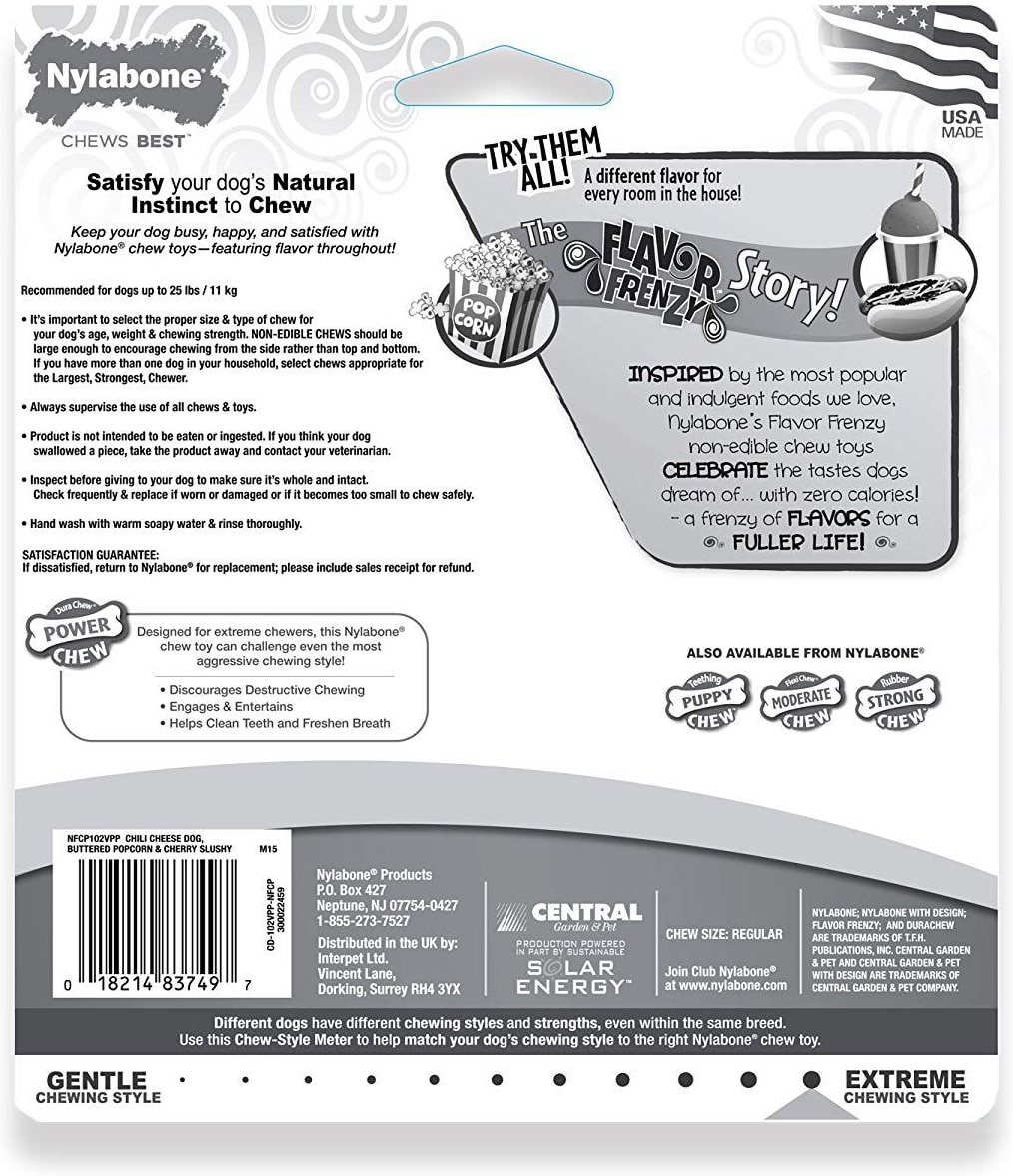 Nylabone Flavor Frenzy Power Chew Triple Pack Chili Cheese Dog, Popcorn & Cherry, Small