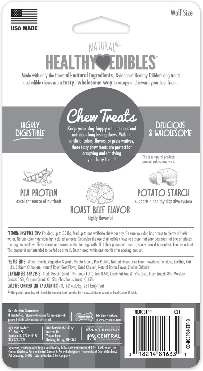 Nylabone Healthy Edibles All-Natural Long Lasting Roast Beef Dog Chew Treats, Medium, 2 count