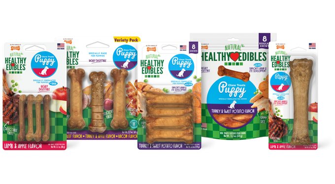 Long-Lasting and Highly Digestible Reward your best friend with Healthy Edibles puppy treats. Made with no artificial colors, flavors, or preservatives, these natural treats come in many delicious flavors, engaging shapes, and sizes for every puppy.