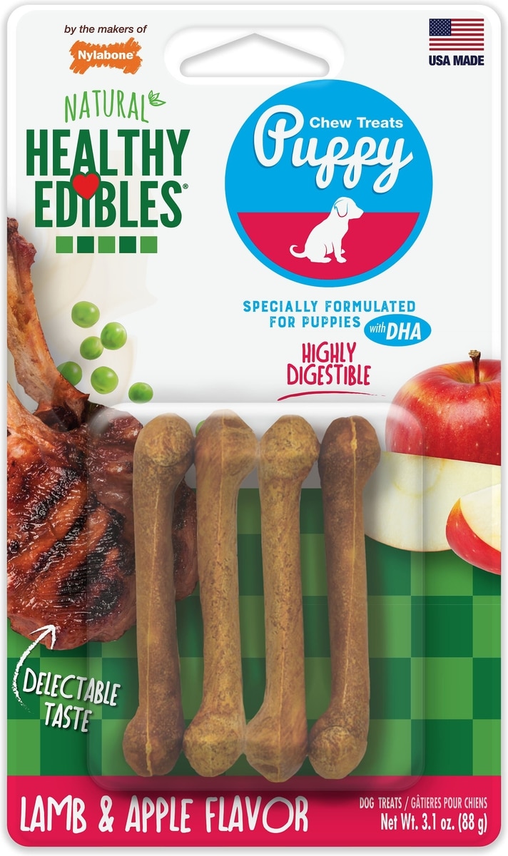 - DealNylabone Healthy Edibles Long Lasting Puppy Lamb & Apple Flavor Dog Bone Treats, Small, 4 count$4.99 Chewy Price$6.99 List Price$4.74 Autoship PricePromo, Spend $100, Get $30 eGift Card with code NEWYEAR +1 deal