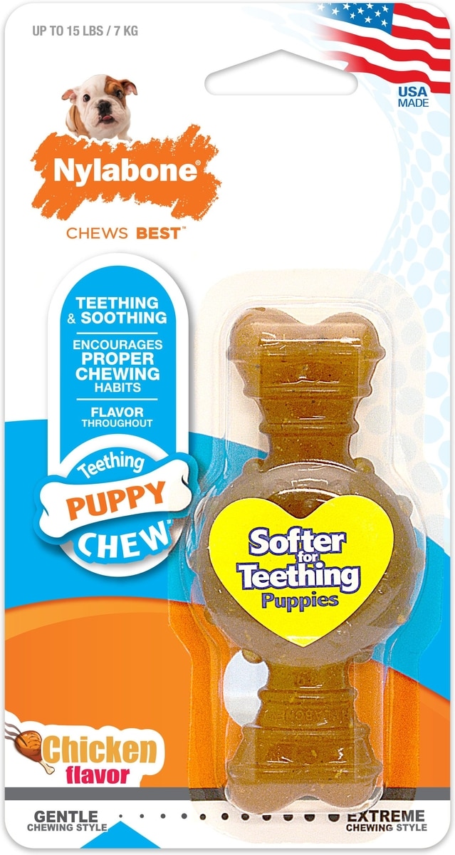 - Nylabone Puppy Teething & Soothing Flexible Chicken Flavor Chew Dog Toy Blue, X-Small$5.89 Chewy Price$6.89 List PricePromo, New Customers Only: Spend $49+, Get $20 eGift Card +1 deal