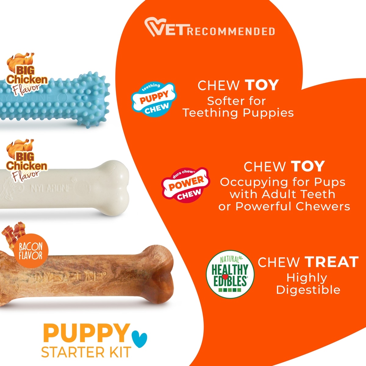 - DealNylabone Healthy Edibles Bacon, Roast Beef, & Turkey Puppy Starter Kit Dog Treats, 3 pack$4.33 Chewy Price$6.99 List Price$4.11 Autoship PricePromo, Spend $100, Get $30 eGift Card with code NEWYEAR +1 deal