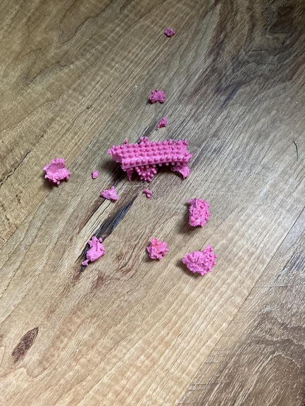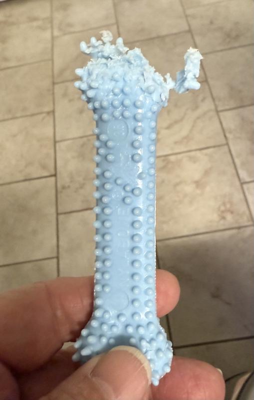 Hi, I have a 12 week old Chihuahua Mini Pinscher mix. We gave him this toy and within a few minutes he had already almost removed two of the little pieces. Should we continue using this for teething or do you recommend moving to a moderate or strong chewing style chew toy?