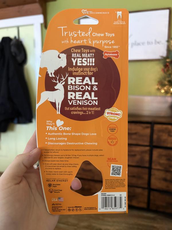 Nylabone Strong Chew Femur Bone Real Bison & Vension Dog Chew Toy, Large