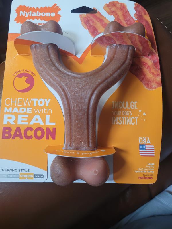 - DealNylabone Gourmet Style Strong Chew Wishbone Bacon Dog Toy, Large$12.74 Chewy Price$19.99 List PricePromo, Spend $100, Get $30 eGift Card with code NEWYEAR +1 deal