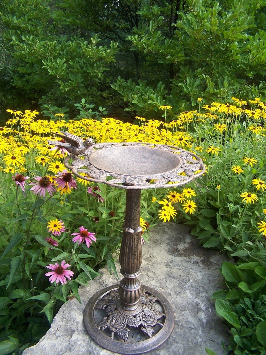 This is a really cool bird bath. Very well made. Love the size for my smaller side garden. I am getting tons of compliments. First day out in yard the birds