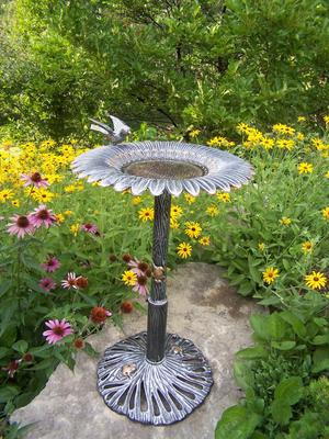 Sunflower metal birdbath