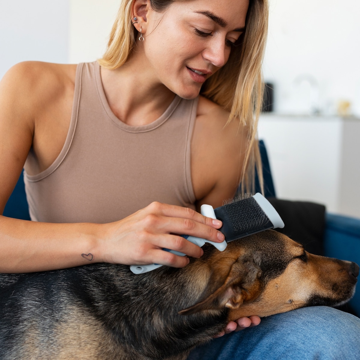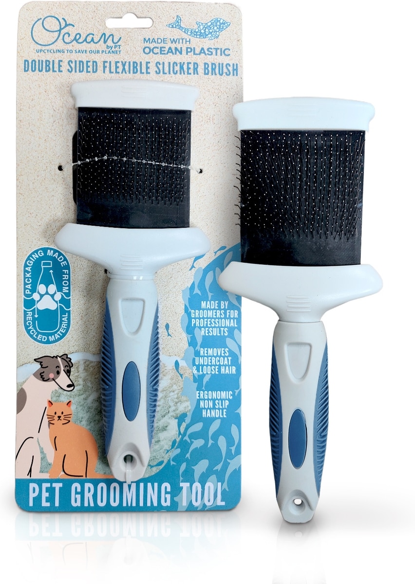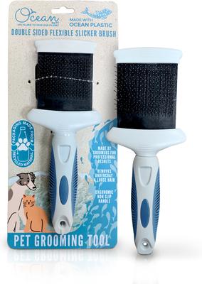 Ocean Plastic by PT Double-Sided Flexible Slicker Dog & Cat Brush, Blue