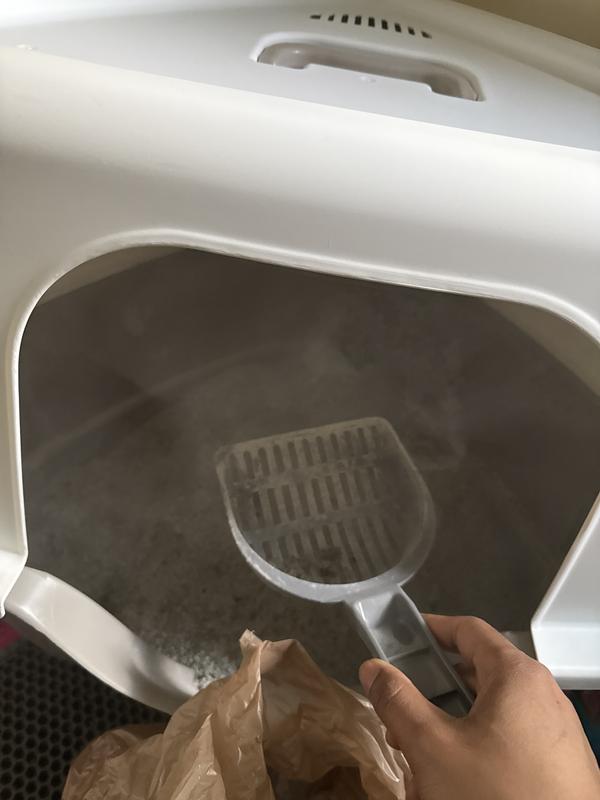 This product claims, on the box, to be low dust. It is not. When I filled the pan a thick cloud of dust rose up more than 5 feet and spread out. When I scoop, it