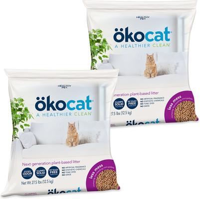Okocat Mini Pellets Unscented Clumping Wood Cat Litter, 27.5-lb bag, bundle of 2