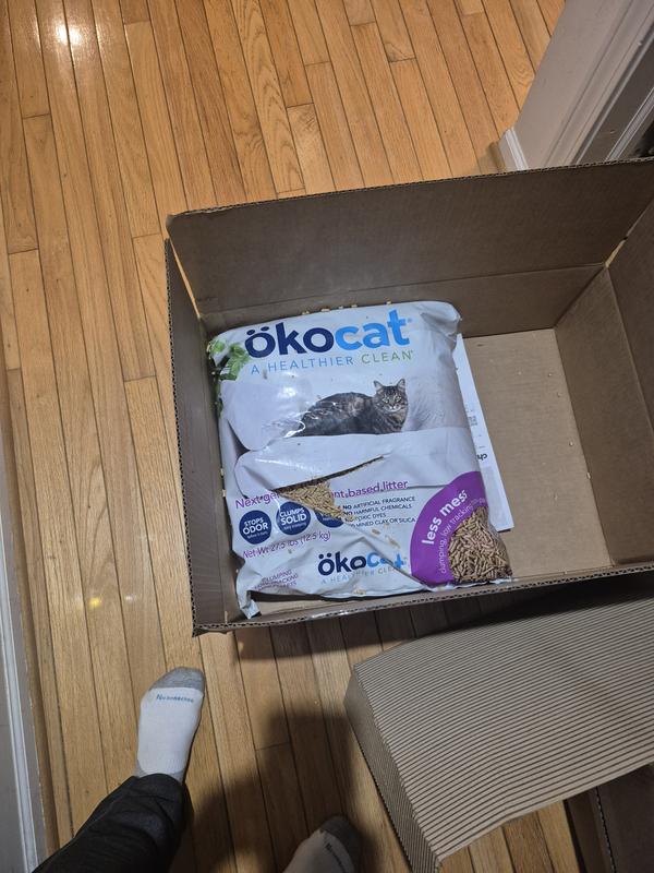 Wherever your cat roams, litter tracked by paws inevitably follows. Free of artificial fragrance, harmful chemicals, and toxic dyes, Okocat natural cat litter lets you keep clay dust out of your home and off floors, counters, and furniture.