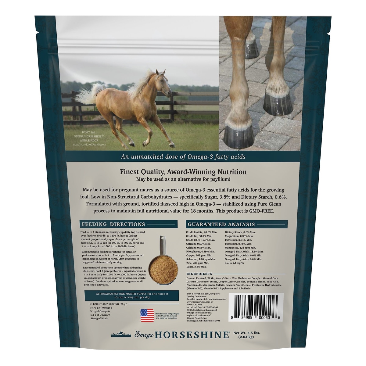 Omega Fields Omega Horseshine Hoof, Skin & Coat Powder Horse Supplement is show safe.