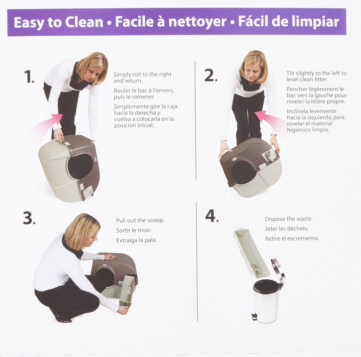 1. Does the pullout tray need to be emptied every time you roll the box? If not, how often does it need to be emptied? Eg. I empty the waste tray of my automatic litter box, 2 large cats using it, 2 x a week. 2. Is there anything, such as a filter, to help control smell from pull out tray?