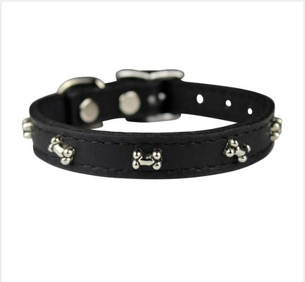 OmniPet Signature Leather Bone Dog Collar, Black, 14-in