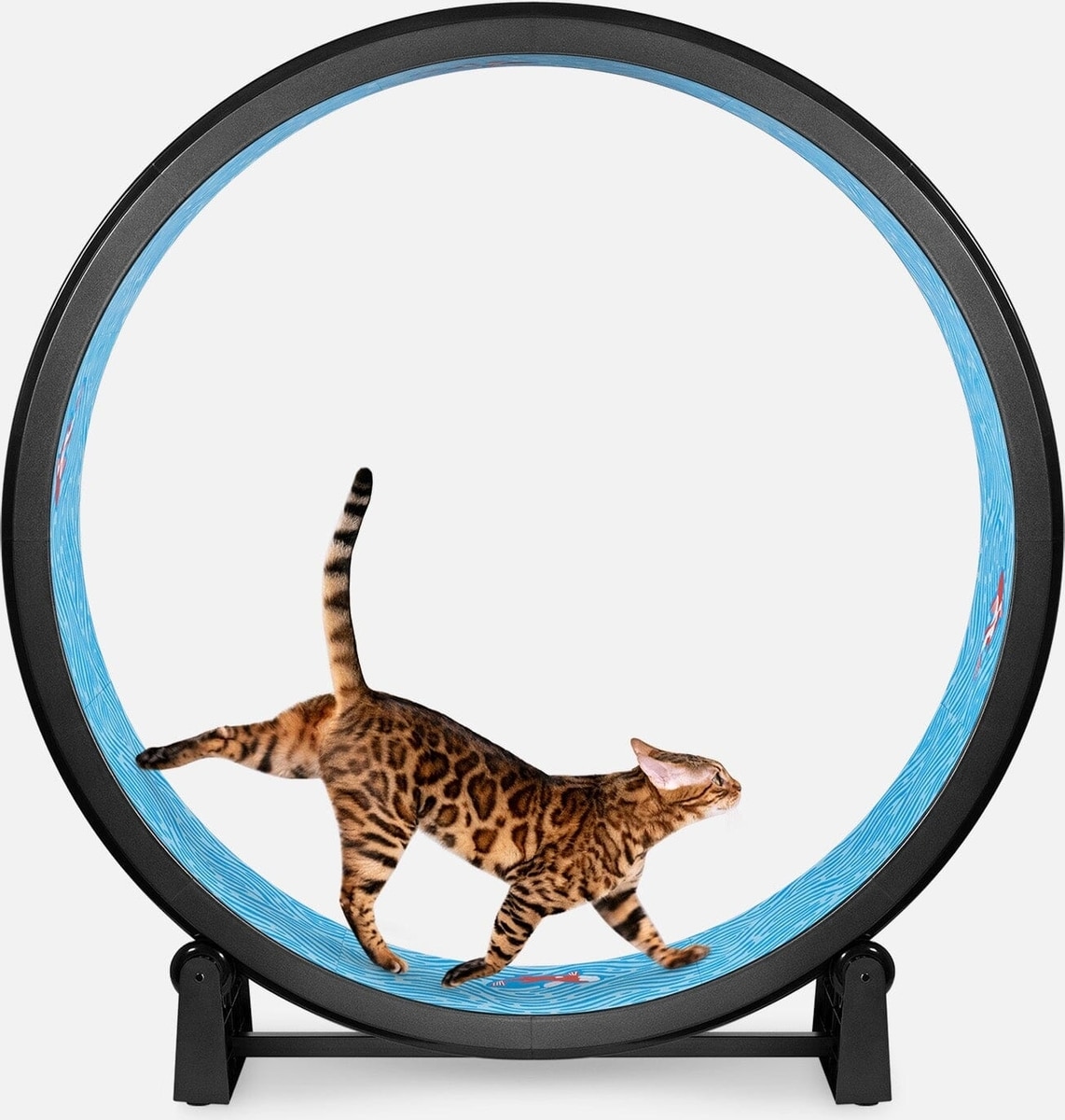 One Fast Cat Gen 7 Cat Exercise Wheel, Black with Koi Pond Foam Pads