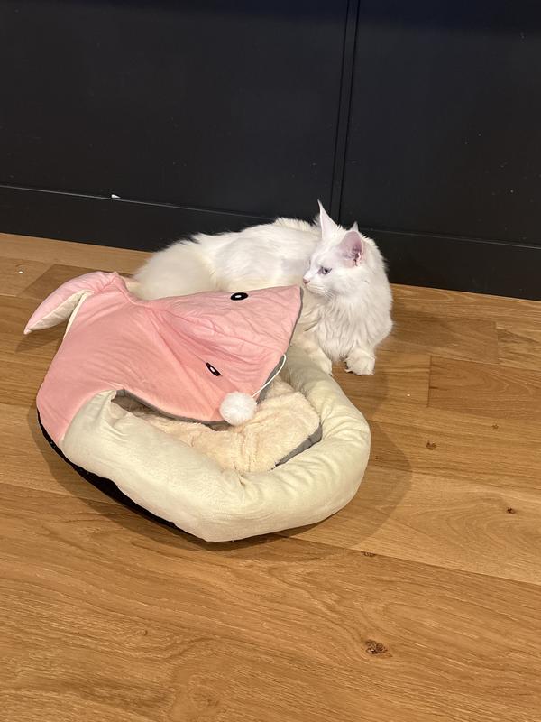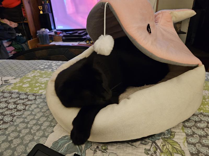 One for Pets Ultra-Soft Whale Semi-Enclosed Cat Bed with Teaser, Pink, Medium