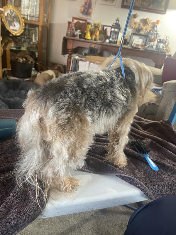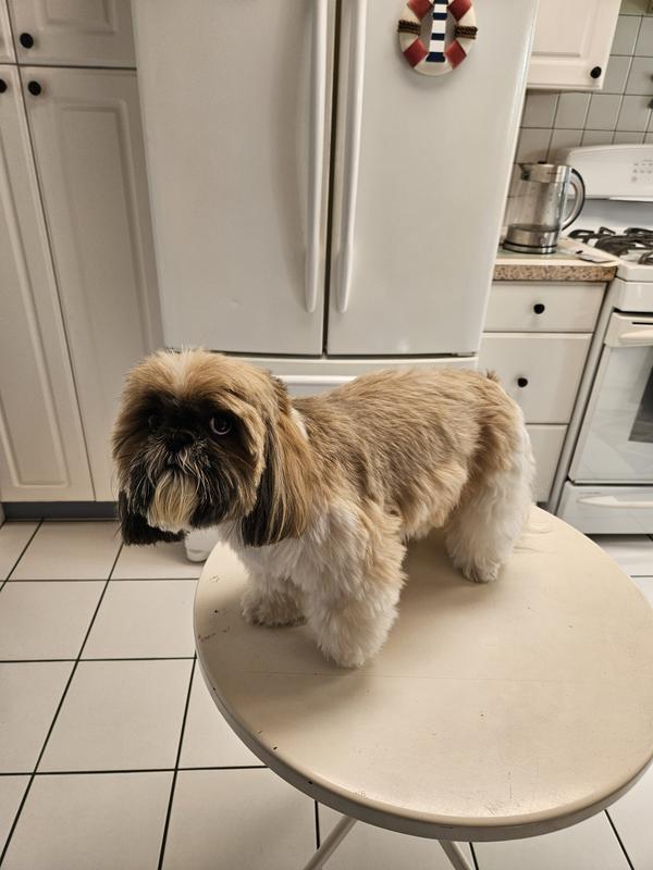 I was skeptical about trying this groomer because I’ve never groomed my pups before but we have 3 of them and it’s so expensive getting their haircuts these days so I figured why not give it a try. We groomed the littlest dog, Harley who is about 12 lbs, and I’m happy to say he let us and he turned out good. The directions were easy to follow and the grooming device isn’t loud like regular shears so it didn’t scare him. Plus we live in an apartment so it wasn’t messy at all. Thank you for making a friendly product for both humans and dogs.