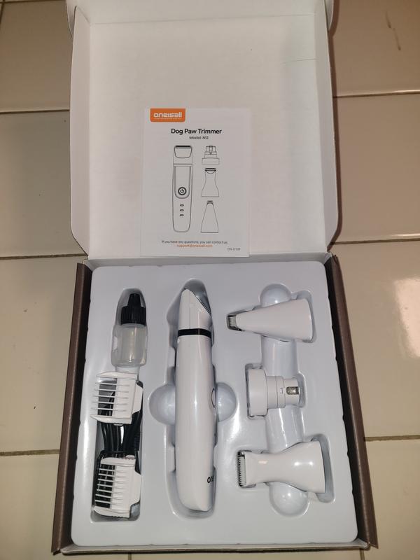 OneIsAll N12 4-in-1 Cordless Low Noise Paw Trimmer & Rechargeable Quiet Dog Grooming Kit with 2-Speed Clippers, White