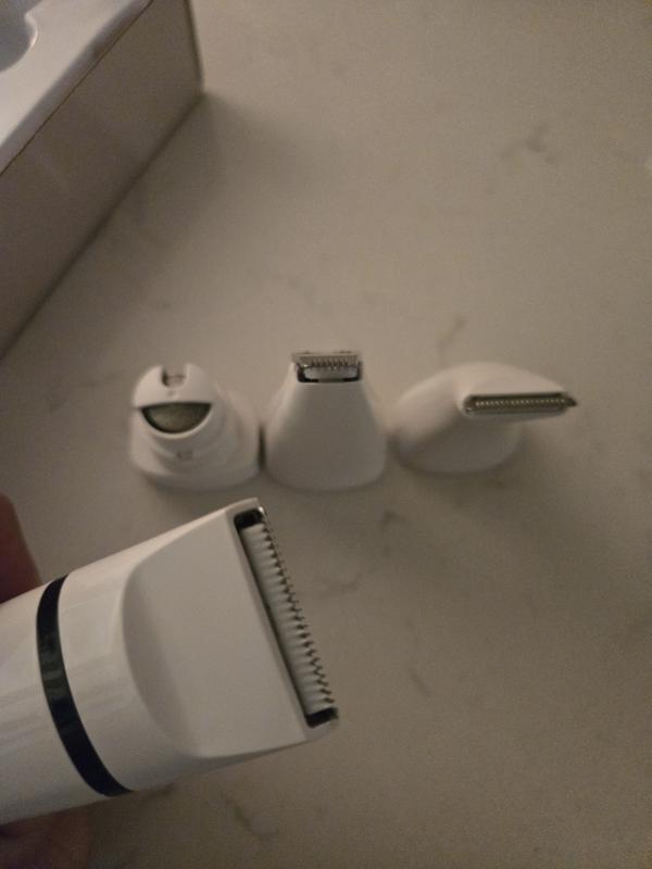 The OneIsAll grooming kit uses stainless steel and ceramic blades for sharp, safe performance. The long-lasting battery powers full grooming—feet, face, body, and nails—on a single charge.
