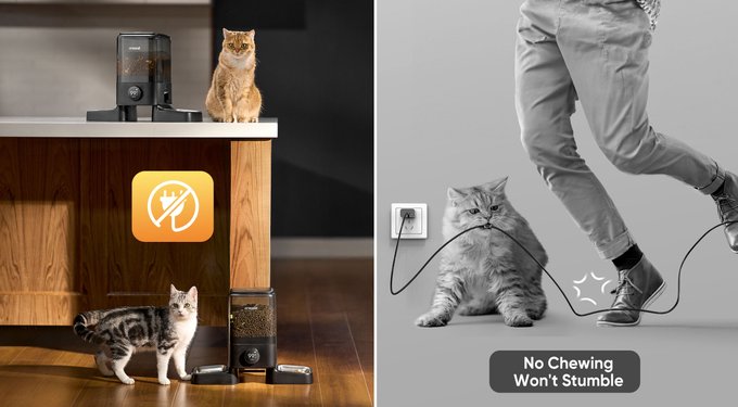 The truly cordless design removes worries about curious cats chewing through cords and eliminates cord-related trips and falls. With no reliance on power outlets, the feeder can be placed anywhere a cat loves most.