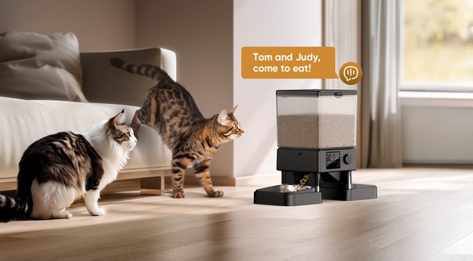 Personalize mealtime with a 10-second recorded message. The feeder automatically plays your voice before each meal, creating comfort and familiarity for your pets even when you’re away.
