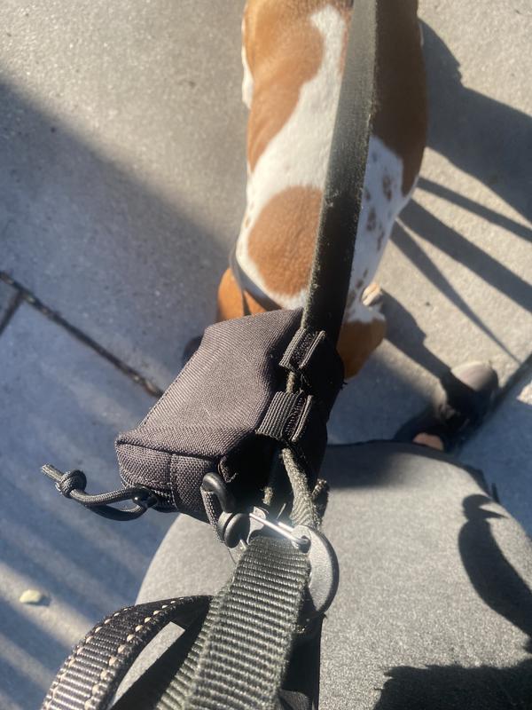 You can fit so much in here, which is great bc between my three dogs i run out of bags a lot and i wanted to be able to always have a spare roll on me! Will order a second as it’s the most durable leash dispenser we’ve tried so far and most of our others have deteriorated. I don’t know if I’d use this for a really small dog as it can be quite bulky and may just feel uncomfortable if you throw two rolls in. For our 8lb dog we use the smaller version of this from the same brand and it just finally ripped at the dispenser slot (it seems to be a thinner material than the bigger version). But for any dog say 25lbs and up it’s a great option. Can literally put your keys or cards in here on a walk if need be.