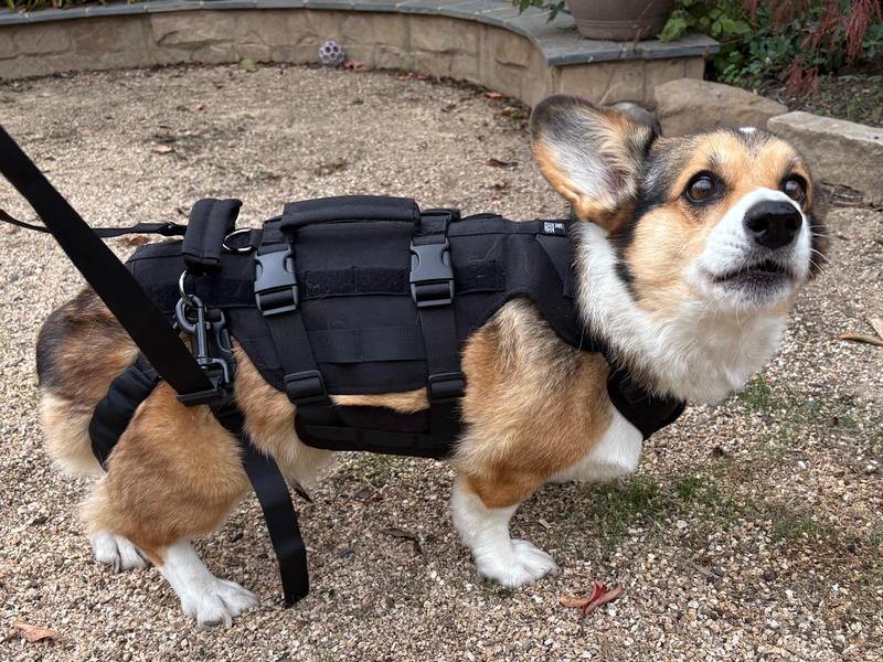 We bought this for our corgi who is recovering from a herniated disc. The design (full-body sleeve with rear leg loops) seems more effective than the ones that are made up of a zillion thin straps and I think helps stabilize and support her back more. It fits well (size small for a 30 lb corgi) and is sturdy and well made. Although there are a lot of buckles and snaps, and it takes a little extra time to get on and off, it also has a lot of convenient handles, plus the long strap that can be attached in a couple of ways to help with lifting and steering. Our dog seems to find the rear leg loops a little awkward, but they can also just be looped under the lower abdomen and clipped to create an alternative sling configuration or removed altogether. Helping a dog sling-walk is awkward in the first place, but this harness does help some and I anticipate putting our dog in it more regularly once she starts walking more.
