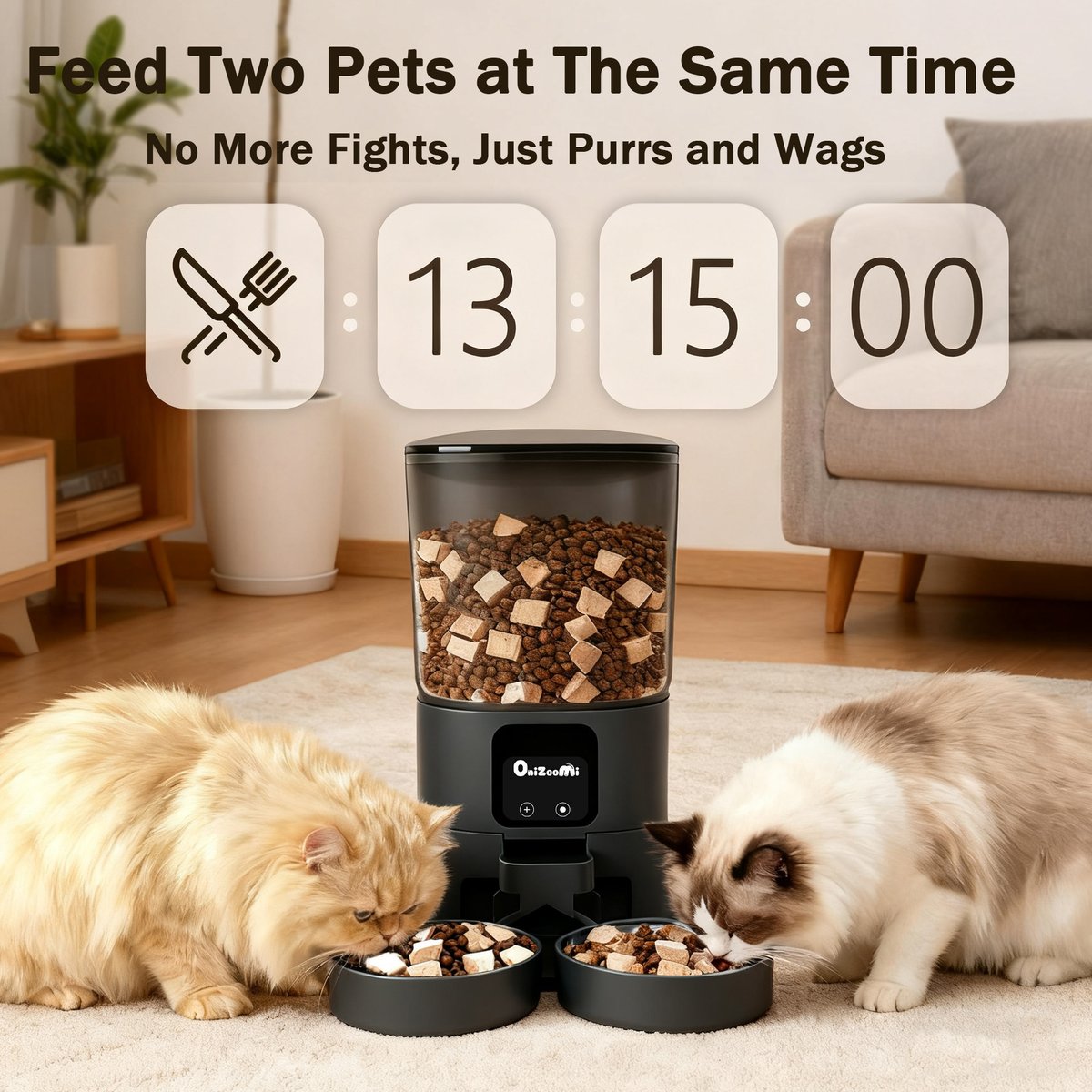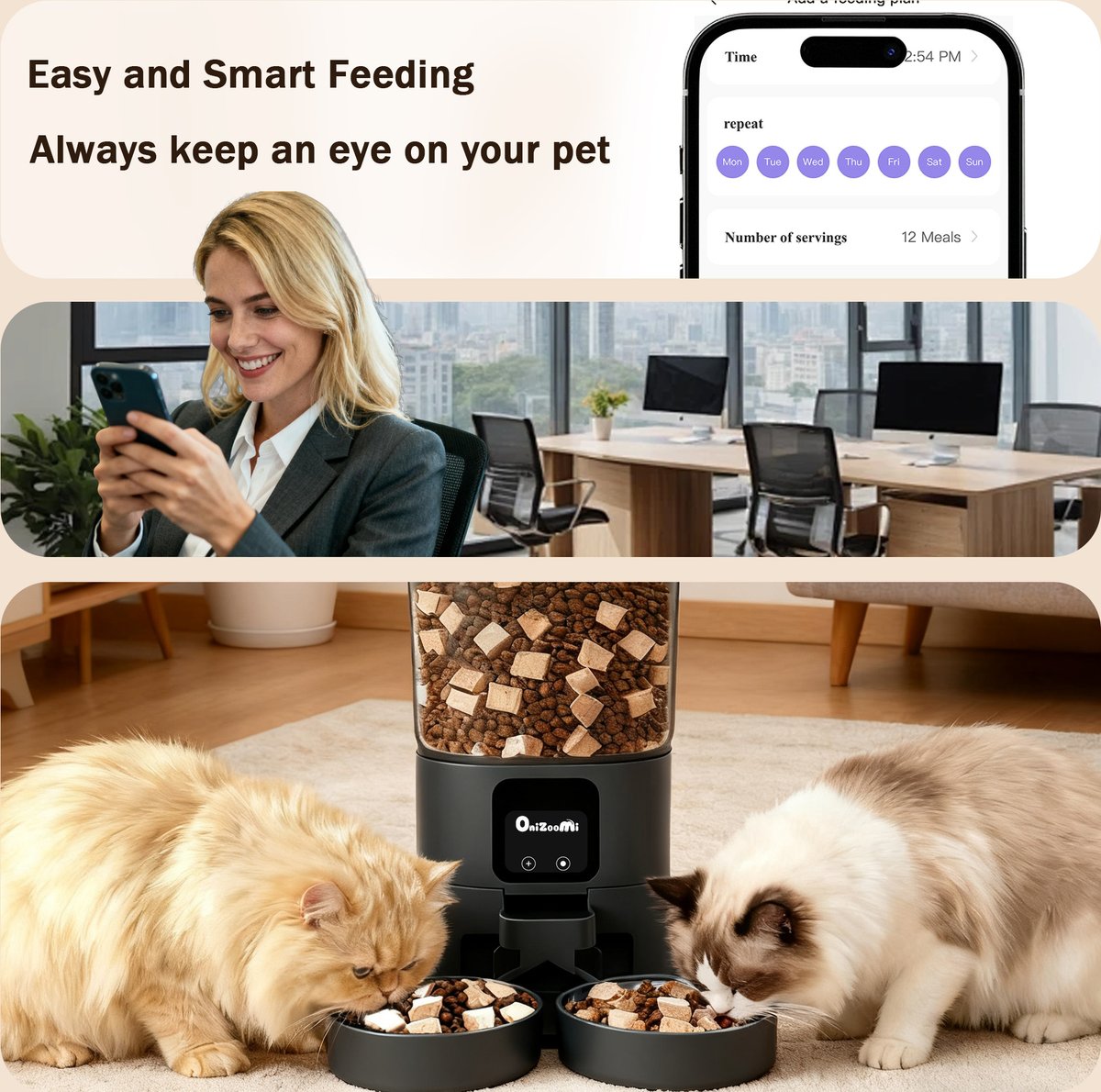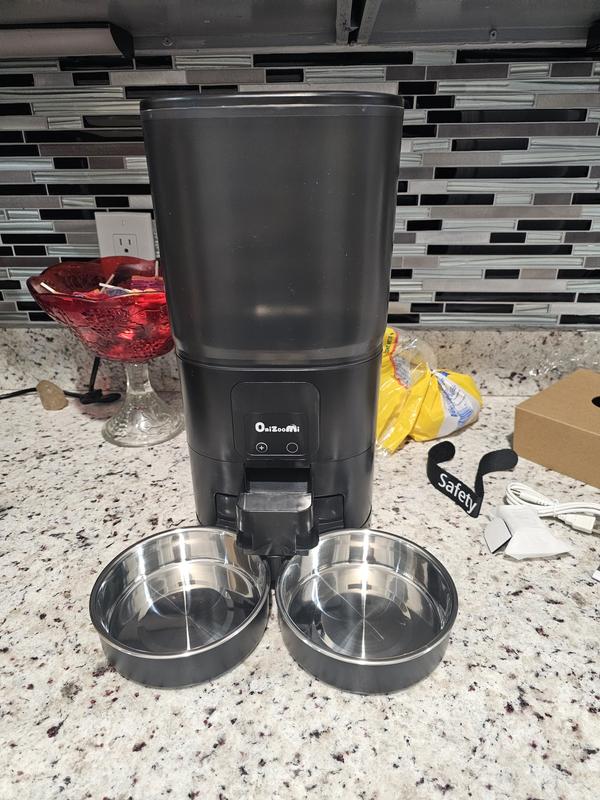 ONIZOOMI Smart 2.4G WiFi Automatic Dual Bowl Cat & Dog Feeder, Black, 30-Cup
