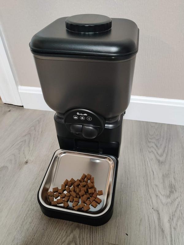 This food dispenser is super easy to set up and use. I use it to feed my dog, and the app makes scheduling meals or adding extra portions really simple. The angled bowl helps the food slide down, and the camera works great for checking in, talking, and recording. Reliable and very convenient!