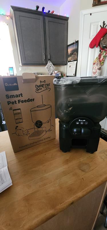 This smart pet feeder works great for keeping my cat fed on schedule. The camera is clear, and I like being able to check in and control it from my phone. It holds