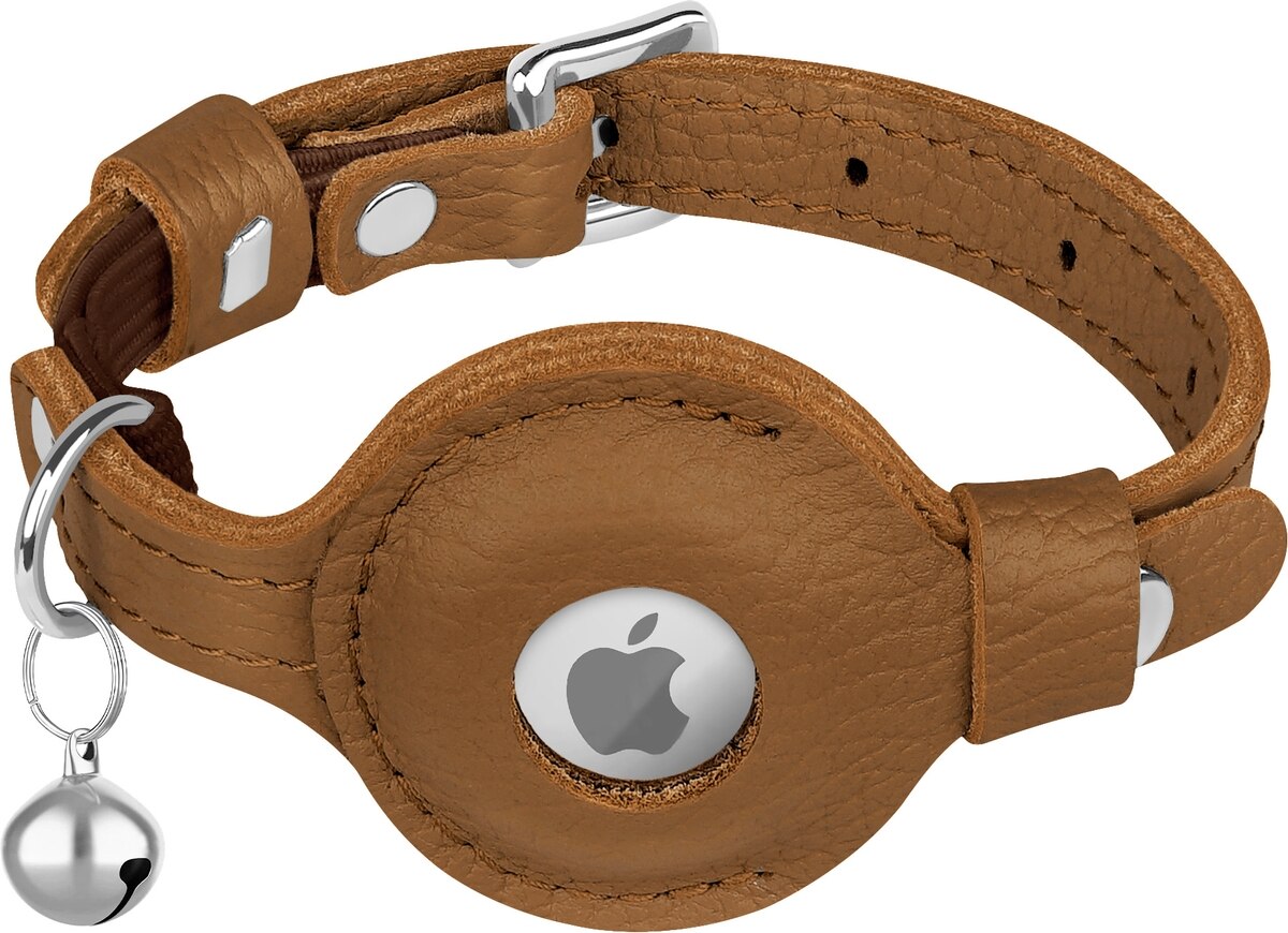 OOPSDOGGY Indoor & Outdoor Non Breakaway AirTag Holder Cat Collar with Bell, Brown, 8 to 11-in neck, 1/2-in wide