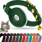 OOPSDOGGY Non Breakaway Lightweight GPS Reflective Leather Apple AirTag Cat Collar with Bell, Black, 8 to 11-in neck, 1/2-in wide