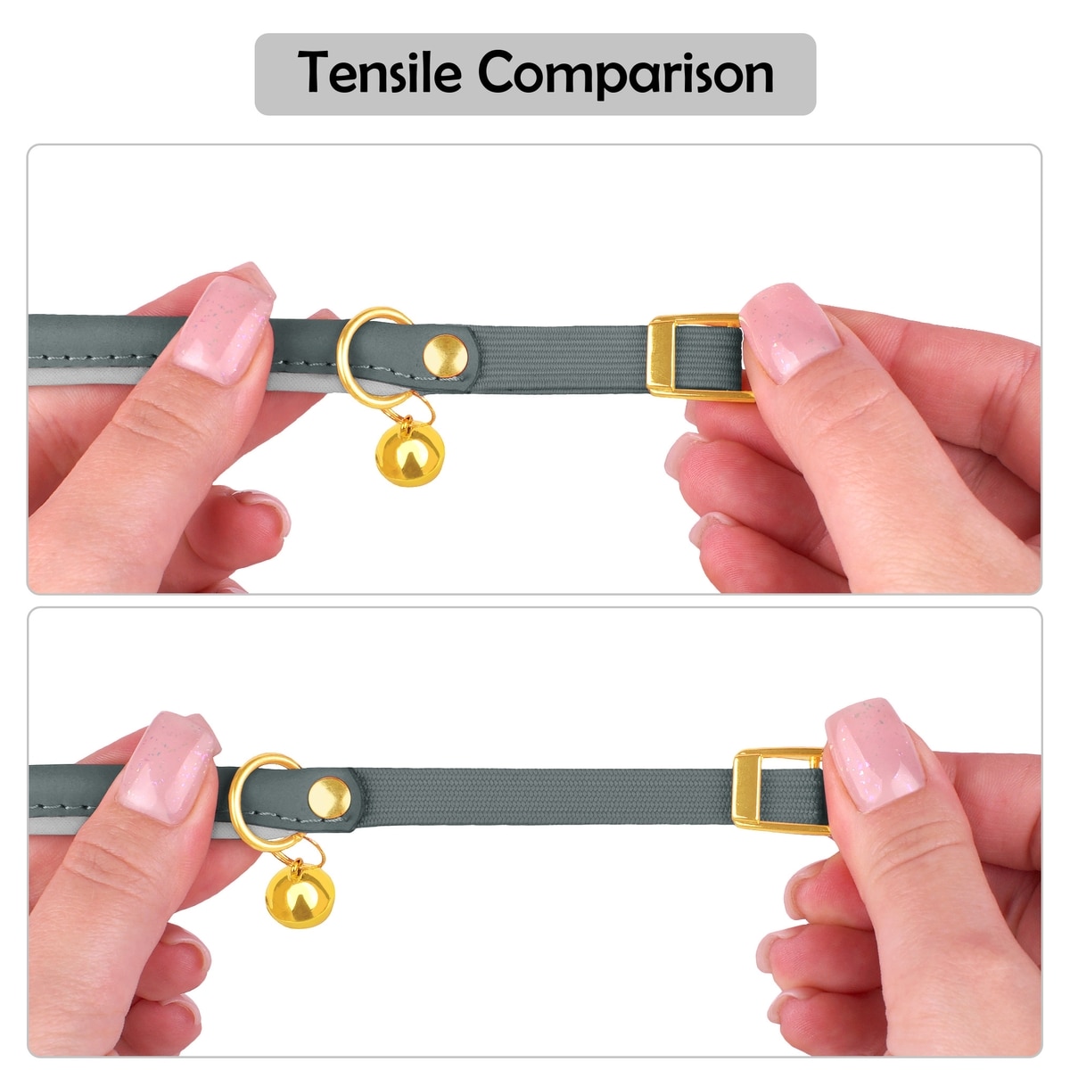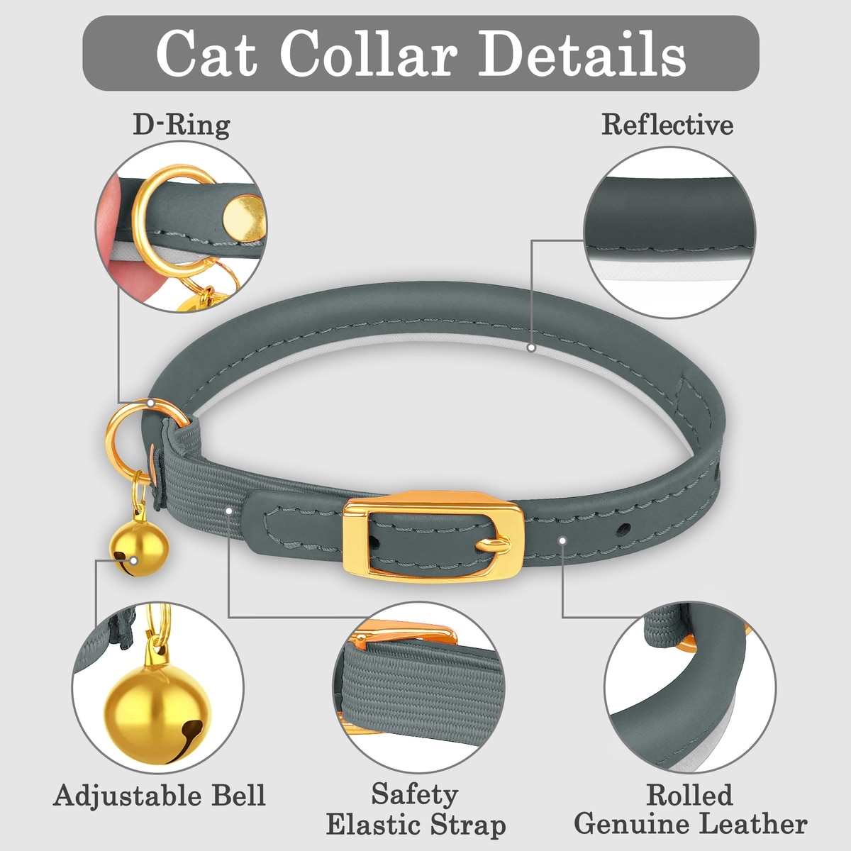 OOPSDOGGY Rolled Leather Reflective Cat Collar with Bell & Safety Elastic Strap, Denim, 8 to 11-in neck, 3/8-in wide
