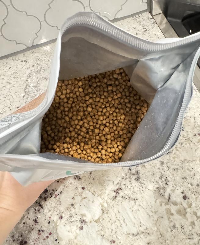 This food has the smallest pieces I have ever seen! We searched and searched for tiny bites for our chihuahua puppy and this is the best one. She loves the taste and the size is perfect for her little mouth. I love the packaging; it’s resealable so it won’t spill easily! Highly recommend for tiny breeds!