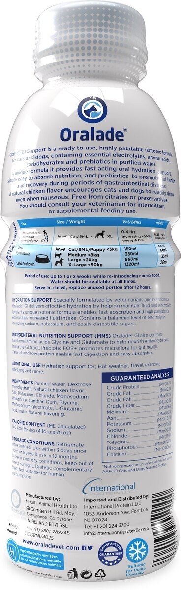 Oralade GI Support Microenteral Nutrition & Oral Hydration Chicken Flavor Dog & Cat Supplement, 500-ml bottle
