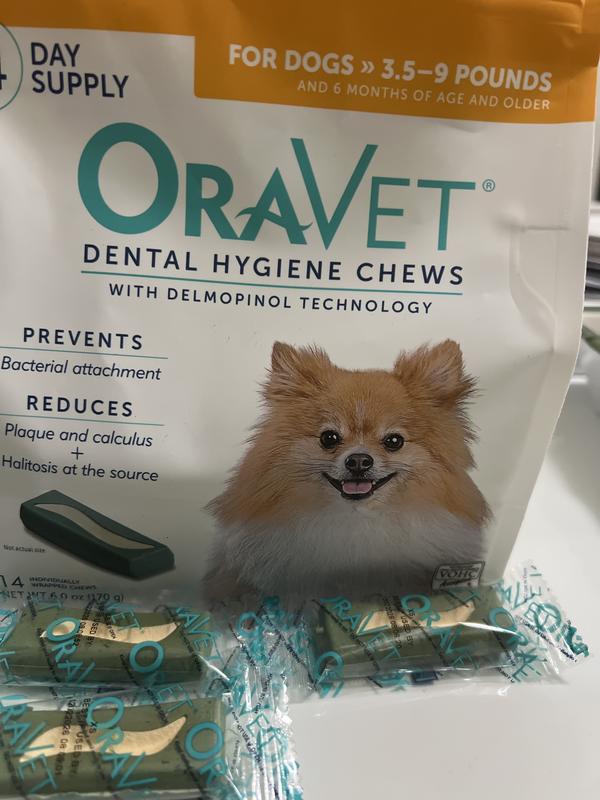 - OraVet Hygiene Dental Chews for Small Dogs, 10-24 lbs., 14 count$20.19 Chewy Price$24.99 List Price$19.18 Autoship PricePromo, Save 50% on your first Autoship +1 deal