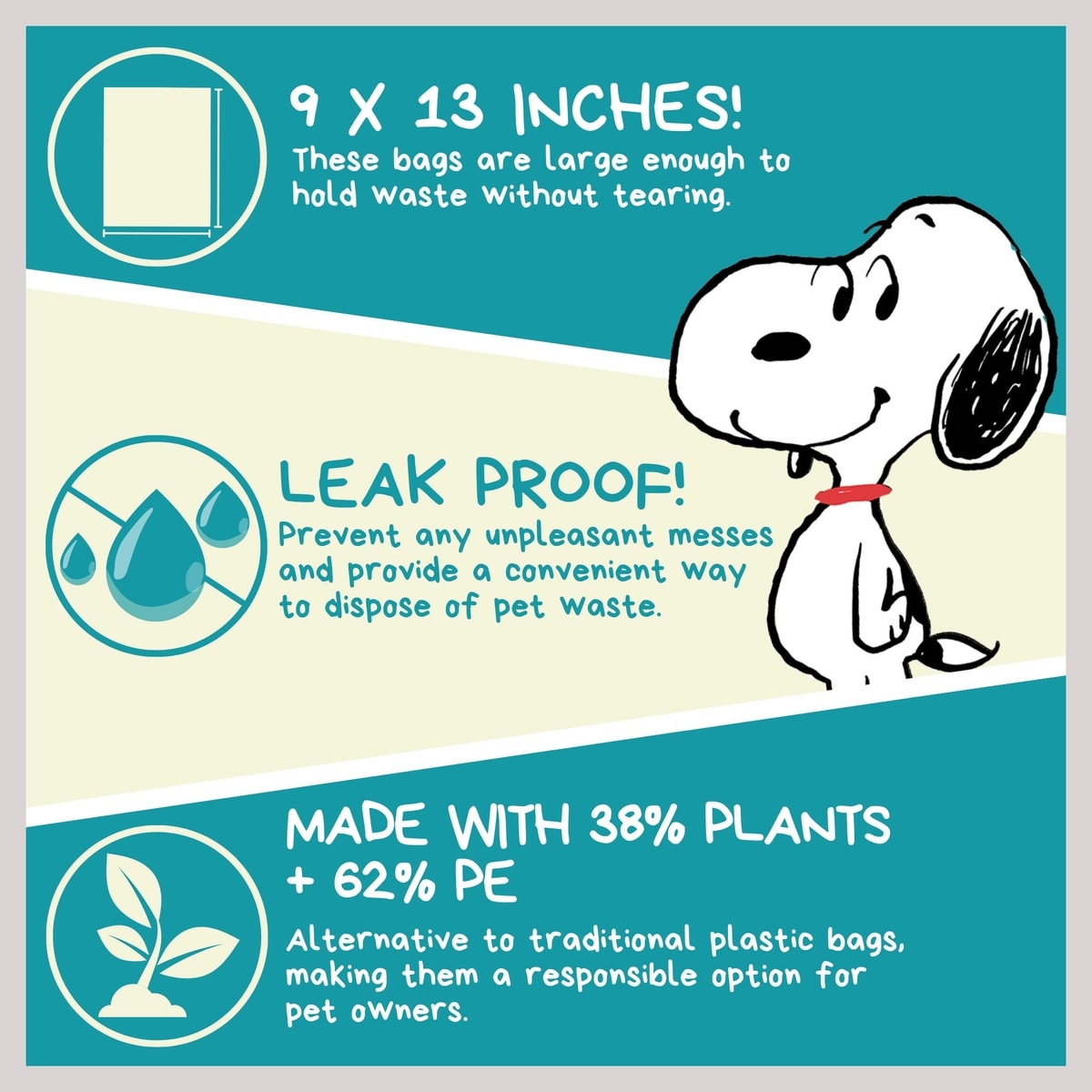 Leak Proof, Extra-Thick Bags Say goodbye to messes—these leak-proof, extra-thick bags are designed to withstand any situation without breaking. Made from durable, high-quality materials, they provide a reliable, worry-free solution for pet waste disposal every time.
