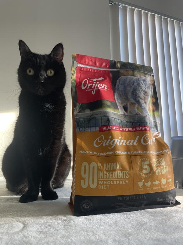 Packed with up to 90% animal ingredients1, premium ORIJEN Cat Diets are rich with the animal protein your cat needs to thrive. Complete with nourishing fresh or raw animal ingredients like poultry and fish, these recipes contain the Biologically Appropriate animal ingredients your carnivore needs to be their best.