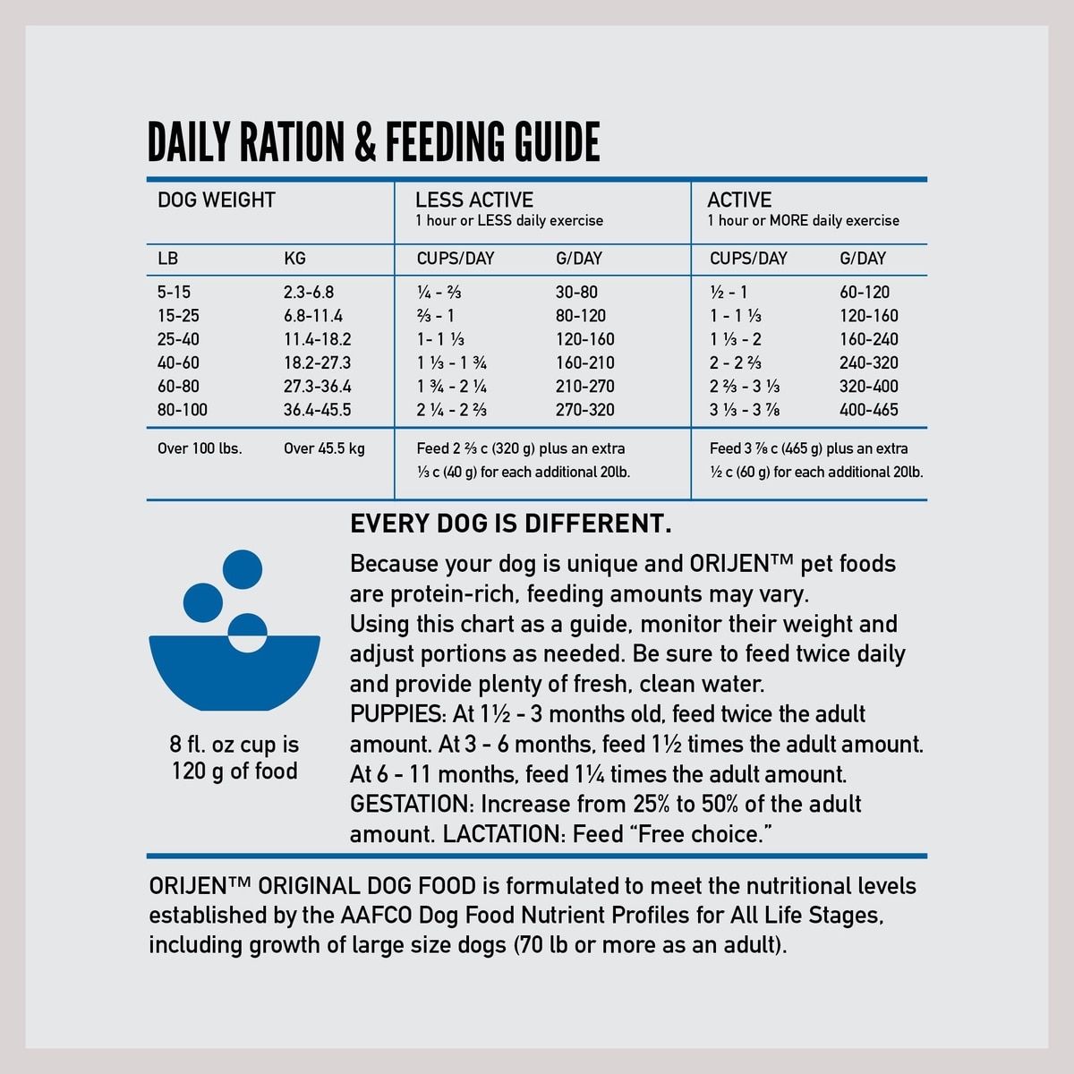 As the fullest expression of Biologically Appropriate nutrition, ORIJEN delivers protein-rich food made from the freshest ingredients* your dog was born to eat. You nourish yourself with the best, and your pet deserves the same—feed them ORIJEN to help them live strong, healthy, and ready for every adventure.