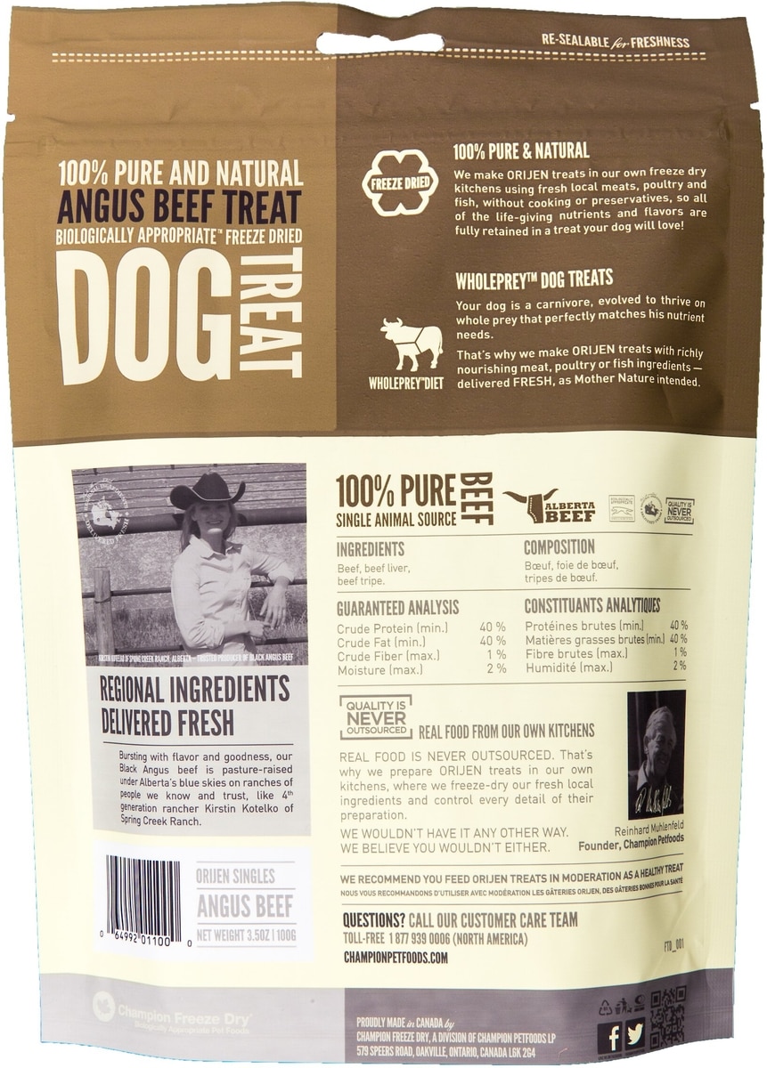 ORIJEN Black Angus Beef Singles Freeze-Dried Dog Treats, 3.5-oz bag