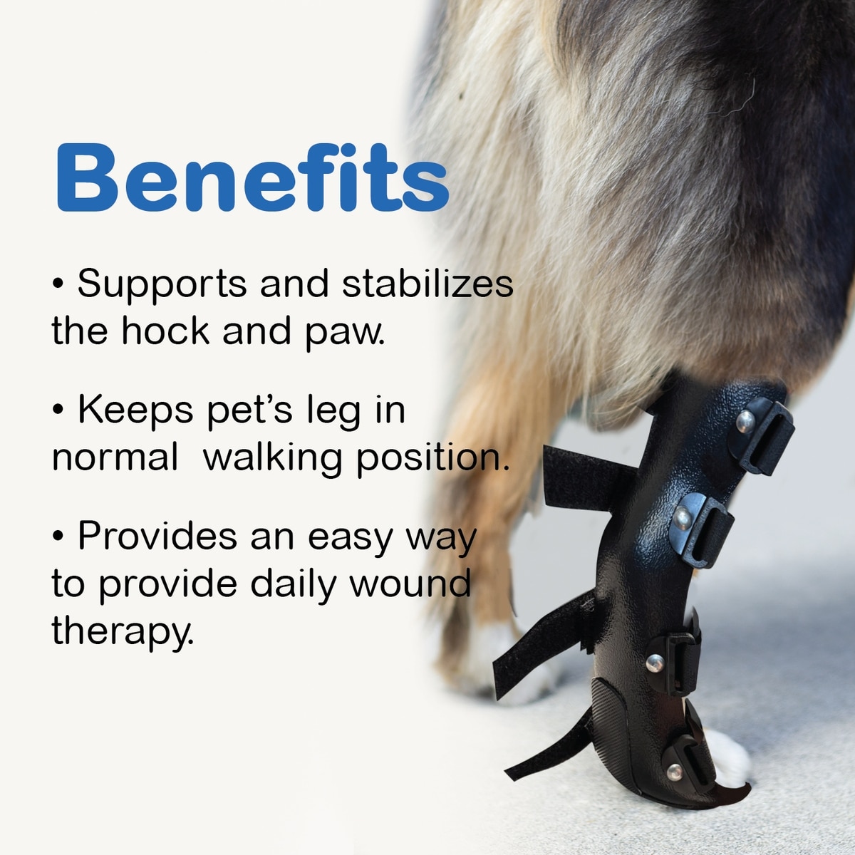 A versatile solution for conditions affecting the rear leg, including hock hyperextension, arthritis, and bone fractures.