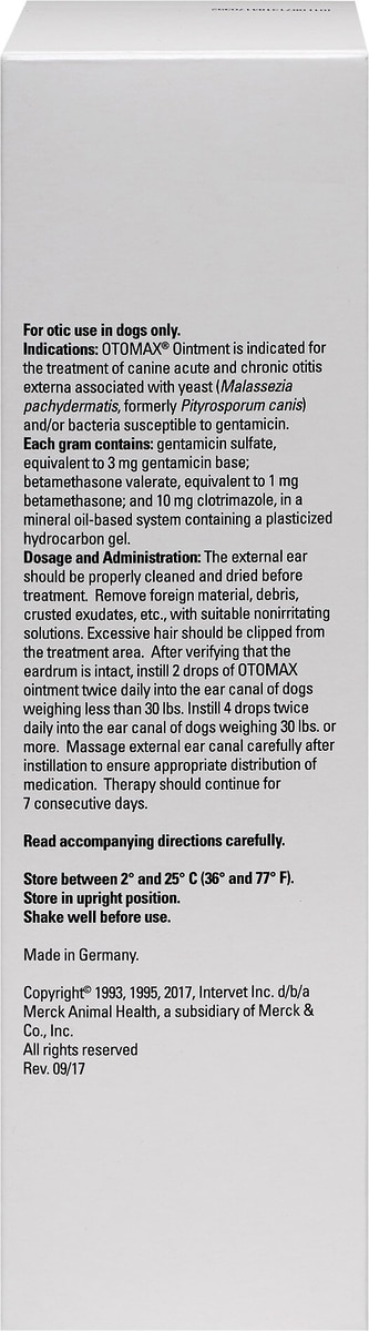 Otomax (Gentamicin / Betamethasone / Clotrimazole) Otic Ointment for Dogs, 215-g bottle