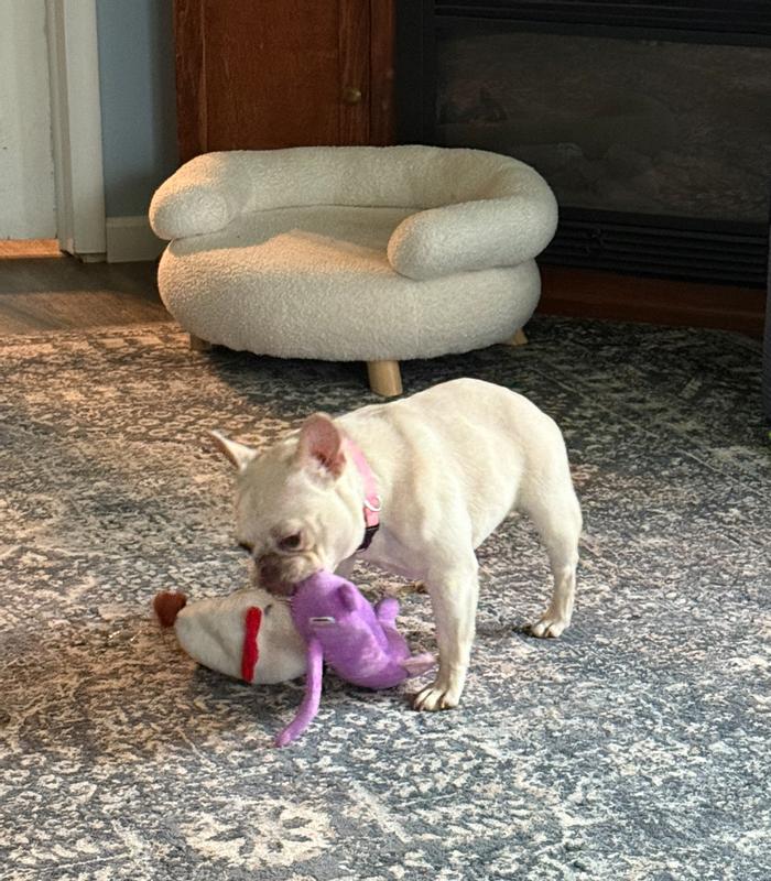 Puppy loves it! He's been carrying it around the house and leaving it in areas where he likes to stretch out and play with his toys. He's quite a chewer and I have noticed he's managed to chew up one ear but it doesn't affect how much he loves to have it nearby for a quick nibble.