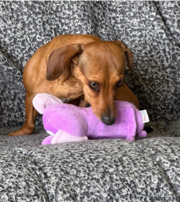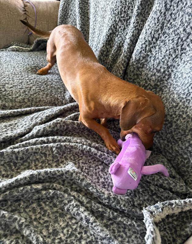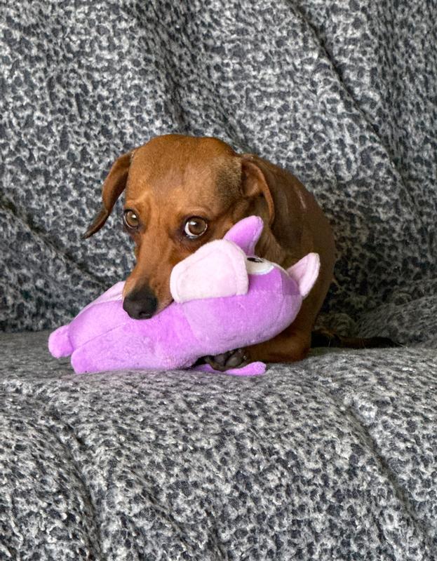 - Cute animal design makes a fun and adorable addition to your dog’s collection of plush toys.