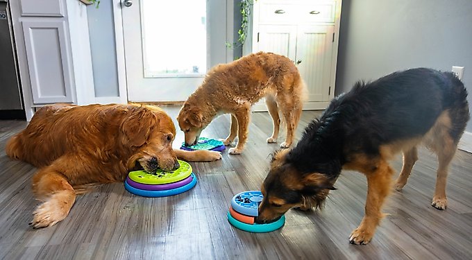 Designed for lick-loving pups, these spinning puzzle feeders help dogs channel energy, slow down mealtime, and soothe stress. Three puzzle sizes, varied challenge levels— same mentally enriching reward!