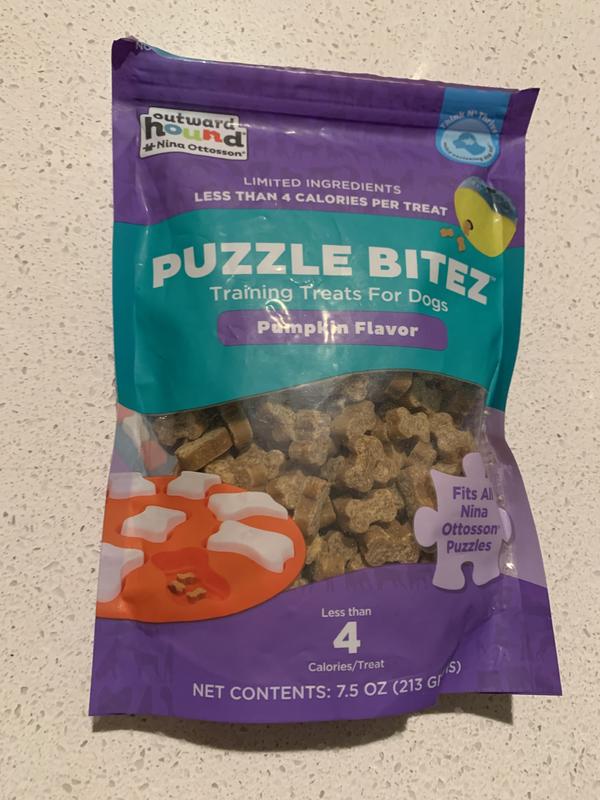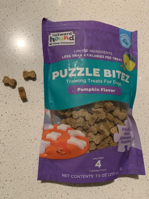 Outward Hound by Nina Ottosson Puzzle Bitez Pumpkin Flavored Dog Treats, 7.5-oz bag