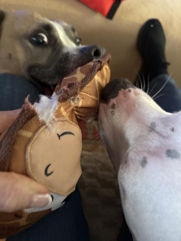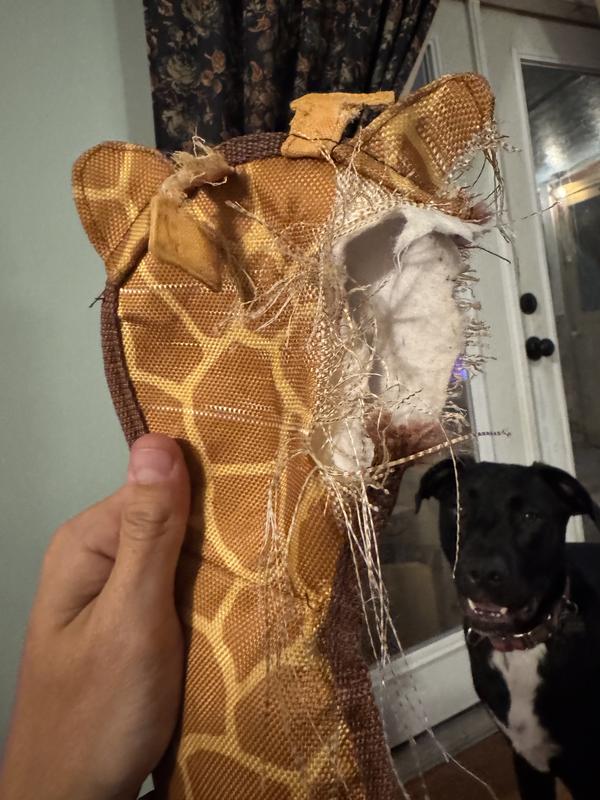 This toy lasted about a week before it was ripped open, guts strewn everywhere, and shredded to oblivion. If you want a toy that lasts I’m afraid this isn’t it!